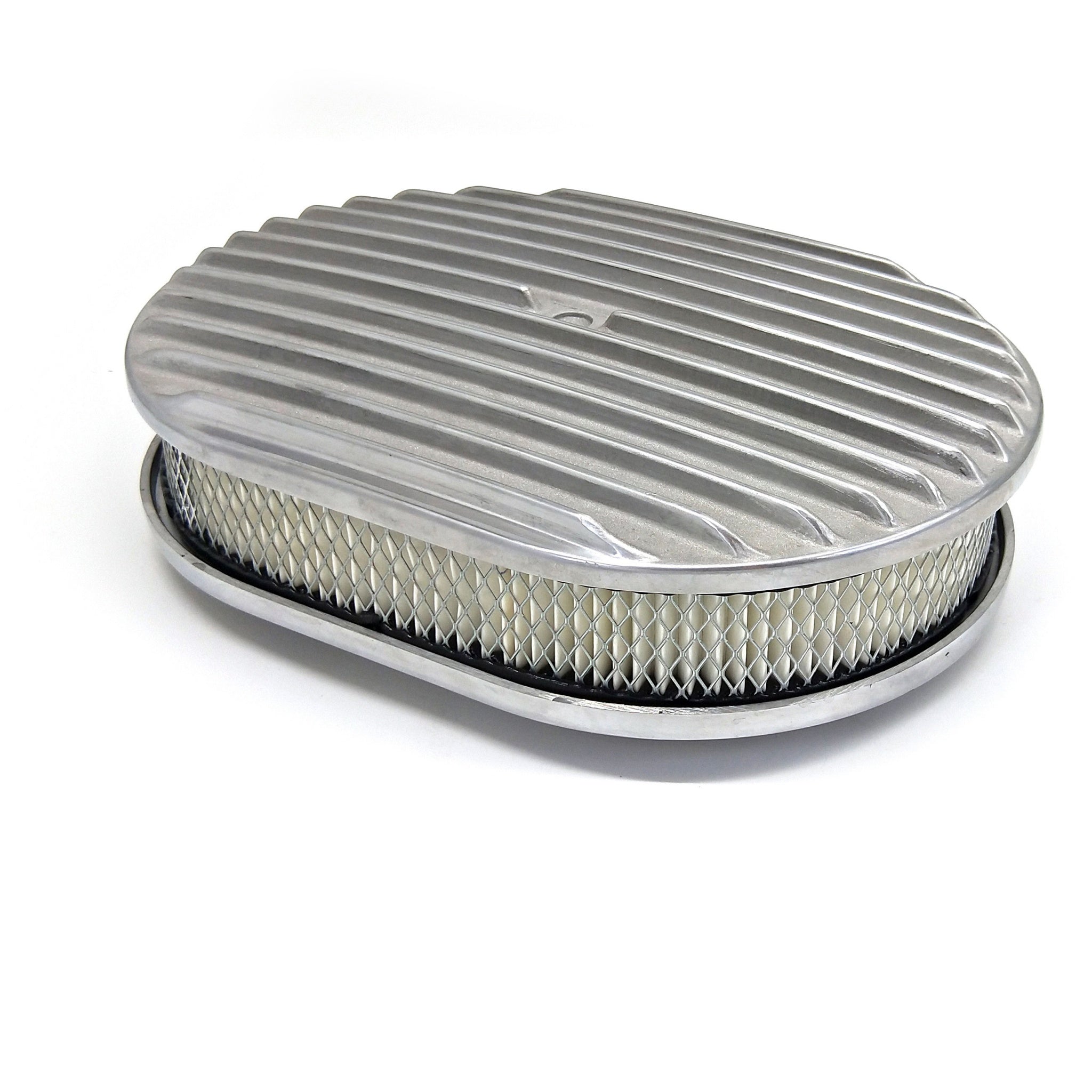 12" Oval Full Finned Air Cleaner W/ Element,Polished