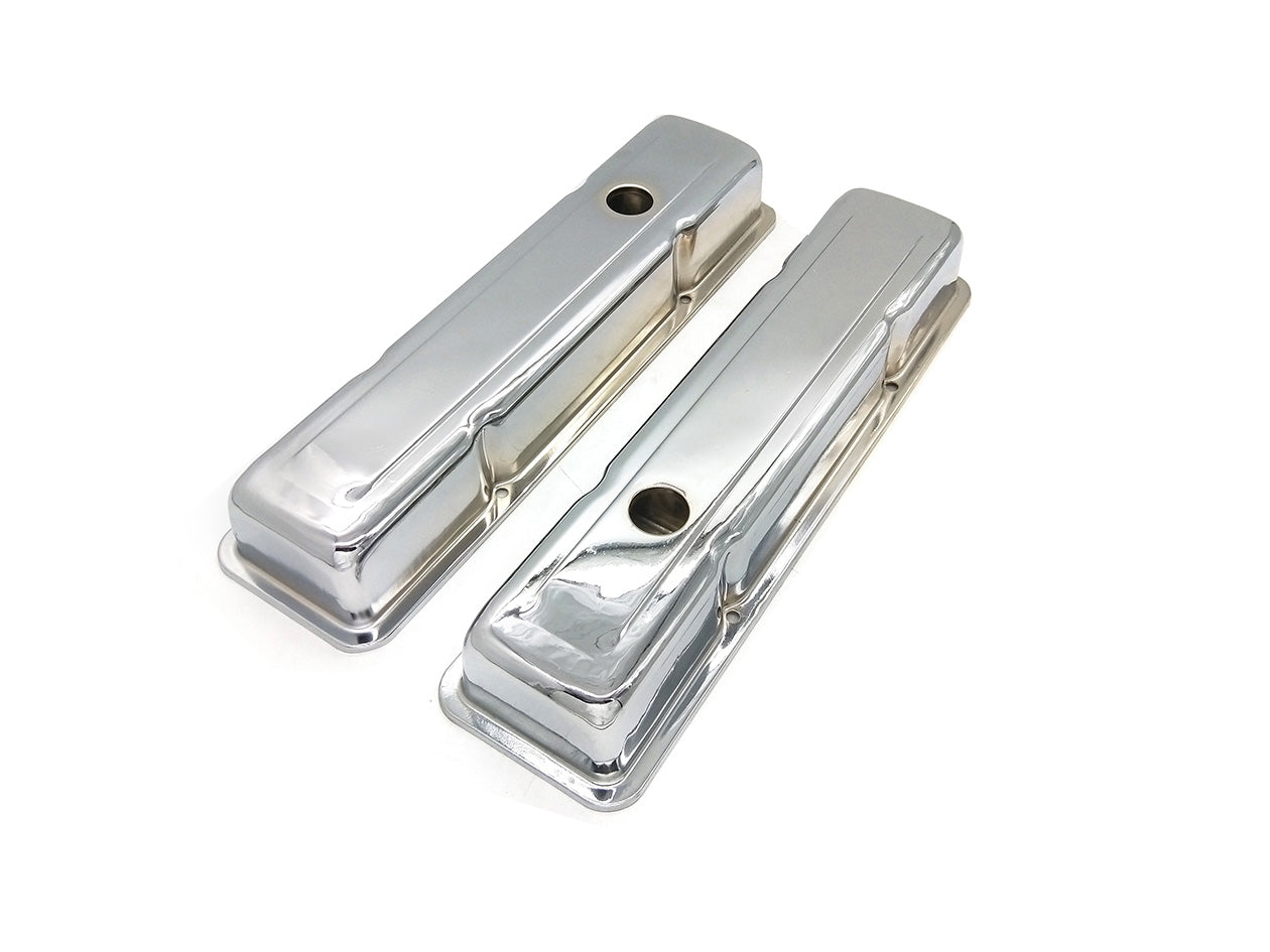 1958-86 Small Block Chevy 283-400 Short Steel Unbaffled Valve Cover, Chrome
