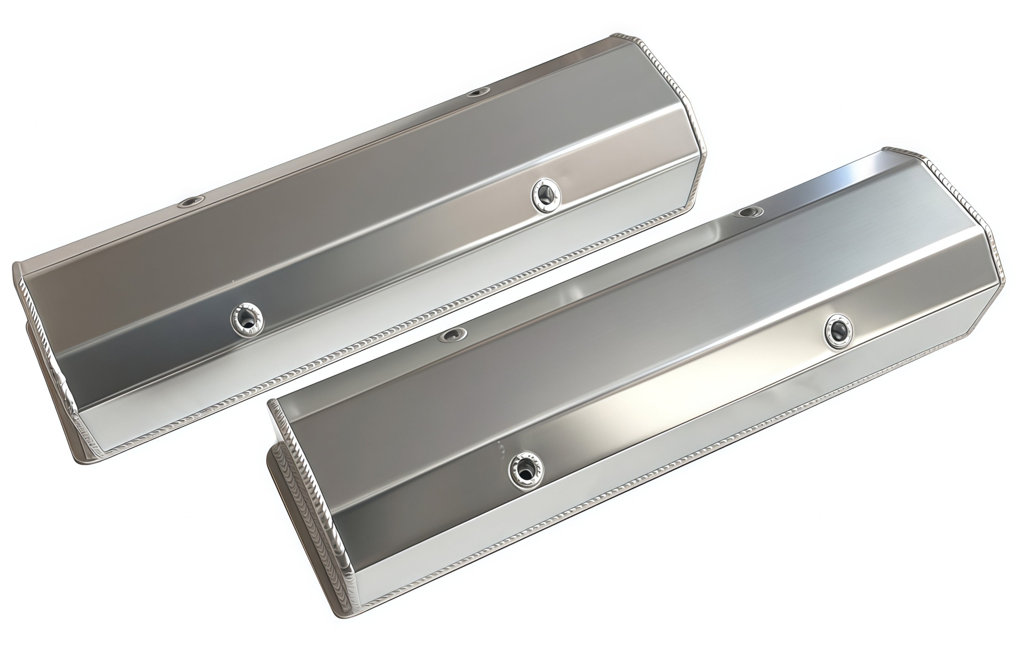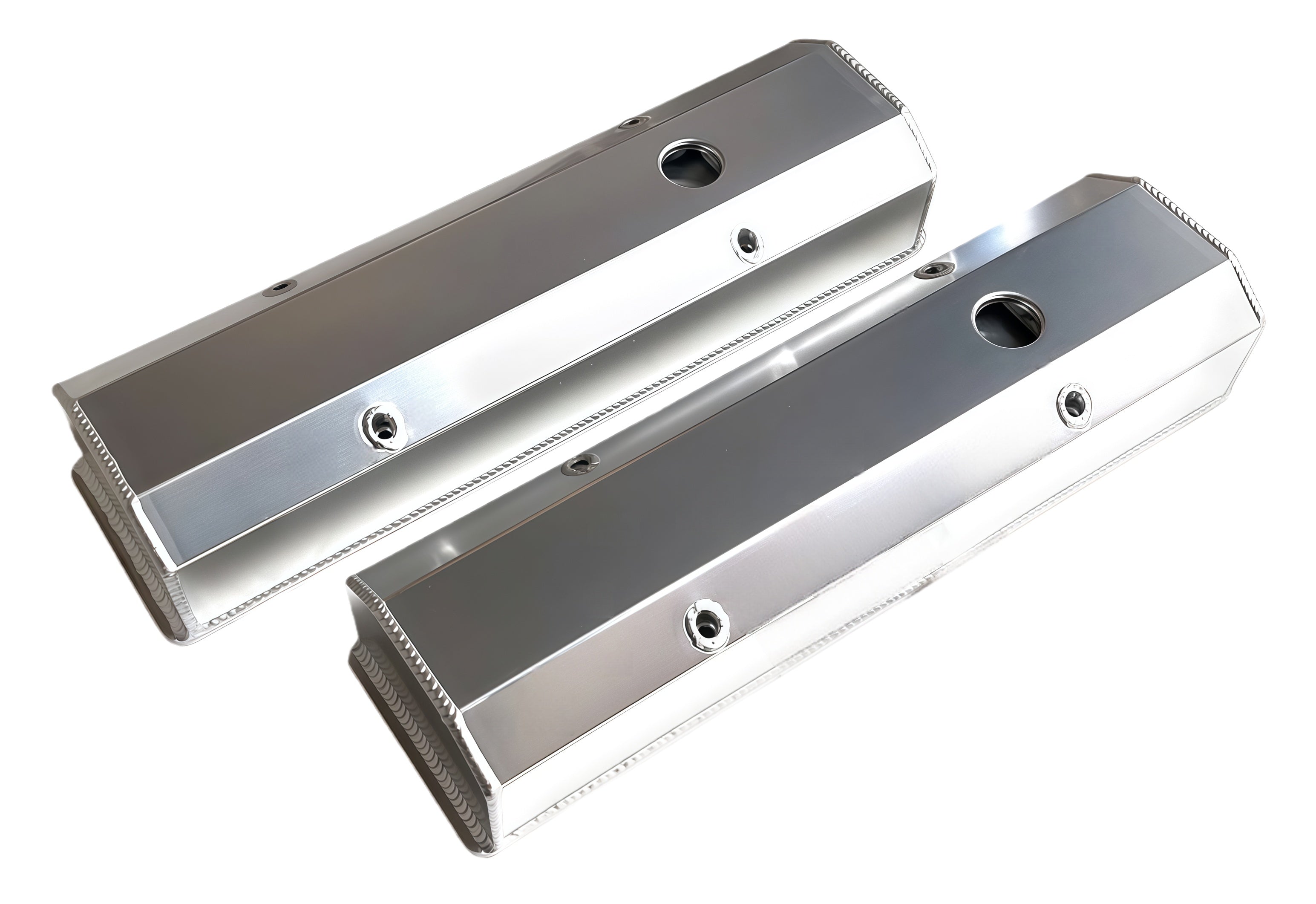 1958-87 SBC Fabricated Tall Aluminum Valve Cover Flat Top Long Bolts With Hole/Without Hole